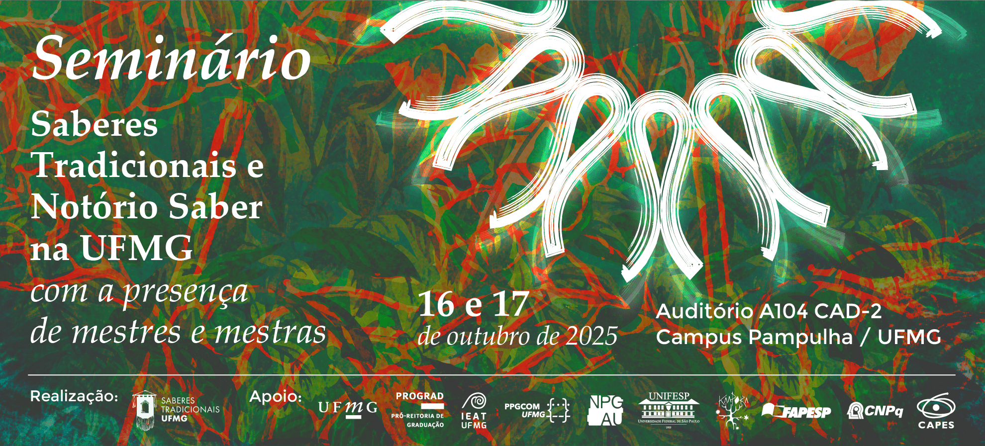 Nos dias 16 e 17 de outubro de 2025, acontece o Seminário Saberes Tradicionais e Notório Saber na UFMG, no Auditório A104 do CAD-2 do Campus Pampulha.