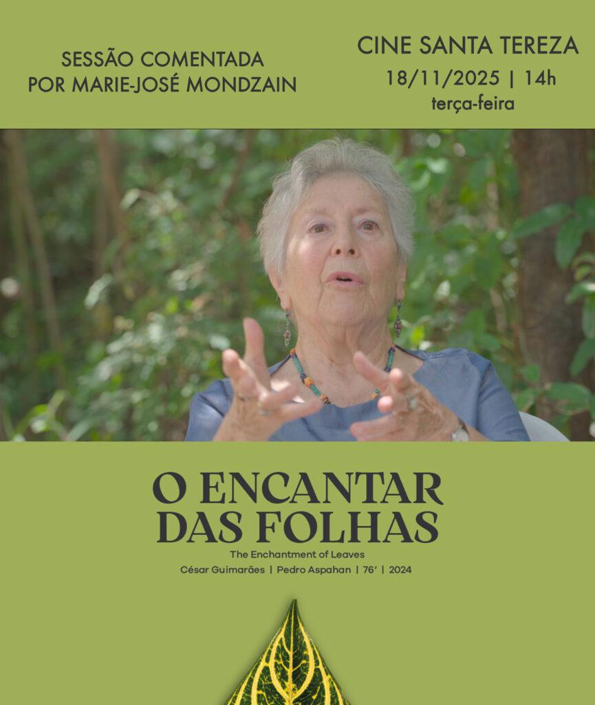 Nessa terça, às 14h, dia 17 de novembro de 2025, no Cine Santa Tereza, teremos a honra de receber a filósofa Marie-José Mondzain que fará um comentário sobre o nosso filme O encantar das folhas!